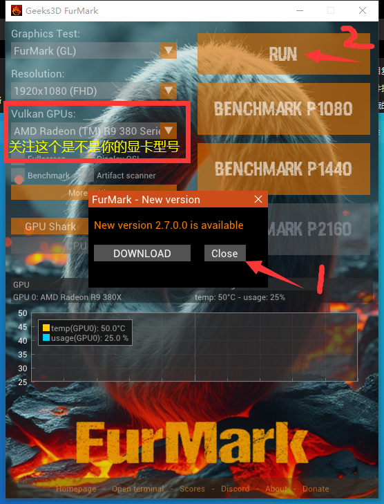 首先关注显示的显卡型号是否正确,如果错误,那么可能是你把视频线插到了核显上(也就是插到了主板上),你需要把线更改位置插到显卡上。然后关闭更新提示,开始烤鸡。